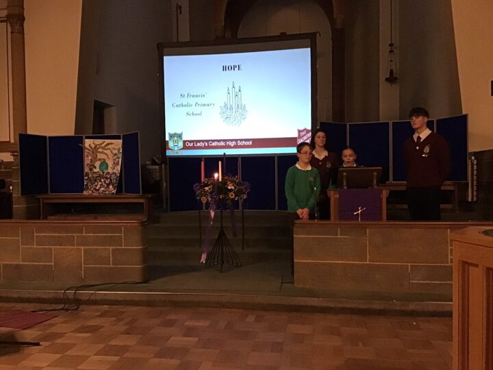 Thank you to two of our children, who came to represent school at the Our Lady’s Advent Service. The art work from Beacon Class was beautiful and the children read very well.