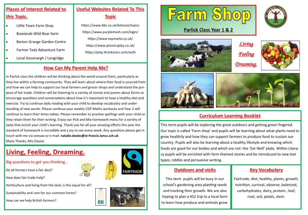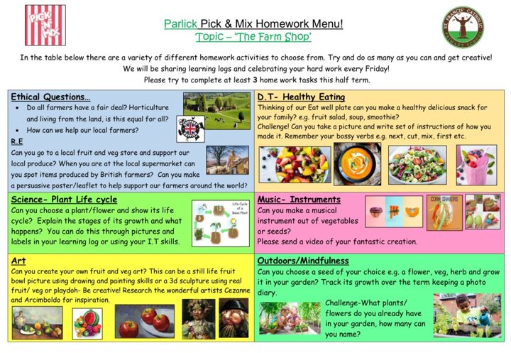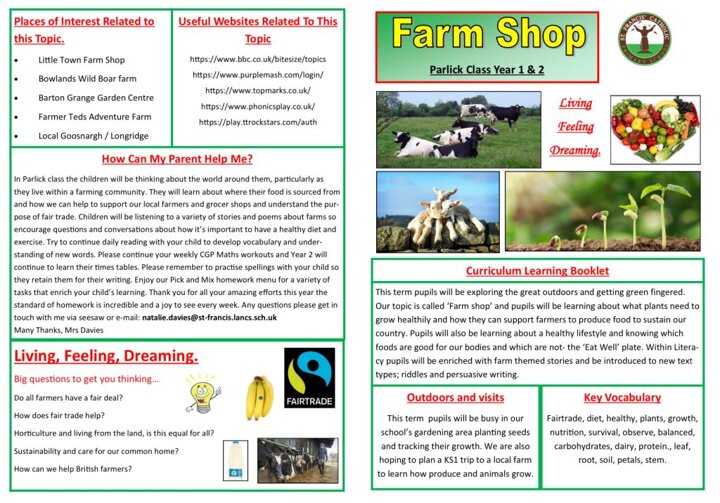 This term pupils will be exploring the great outdoors and getting green fingered learning all about plants and what they need to grow. Our topic is called ‘Farm shop’ and pupils will be learning about what plants need to grow healthily and how they can support farmers to produce food to sustain our country. Pupils will also be learning about a healthy lifestyle and knowing which foods are good for our bodies and which are not- the ‘Eat Well’ plate. Within Literacy pupils will be enriched with farm themed stories and be introduced to new text types; riddles and persuasive writing. In D.T we will be making some healthy tasty wraps and taste fruit and vegetables.