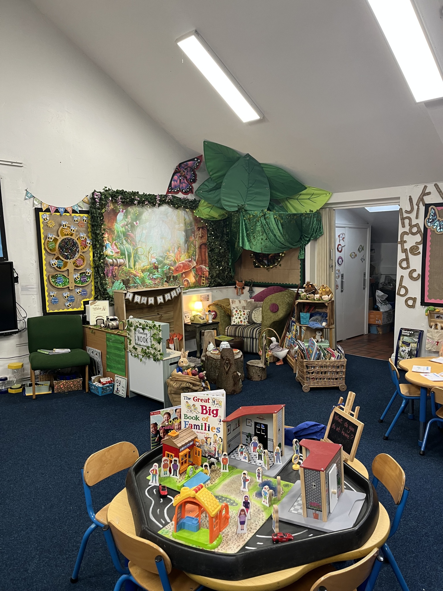 Our Reception classroom offers a vibrant and nurturing environment where children feel safe, inspired, and ready to learn. Indoors, the space is thoughtfully arranged to encourage curiosity and independence, with engaging learning areas that support early literacy, numeracy, creativity, and play. Outdoors, children enjoy a rich and stimulating setting that promotes exploration and physical development, from imaginative play zones to nature-inspired activities. Together, these environments create a joyful and inclusive atmosphere where every child can thrive.