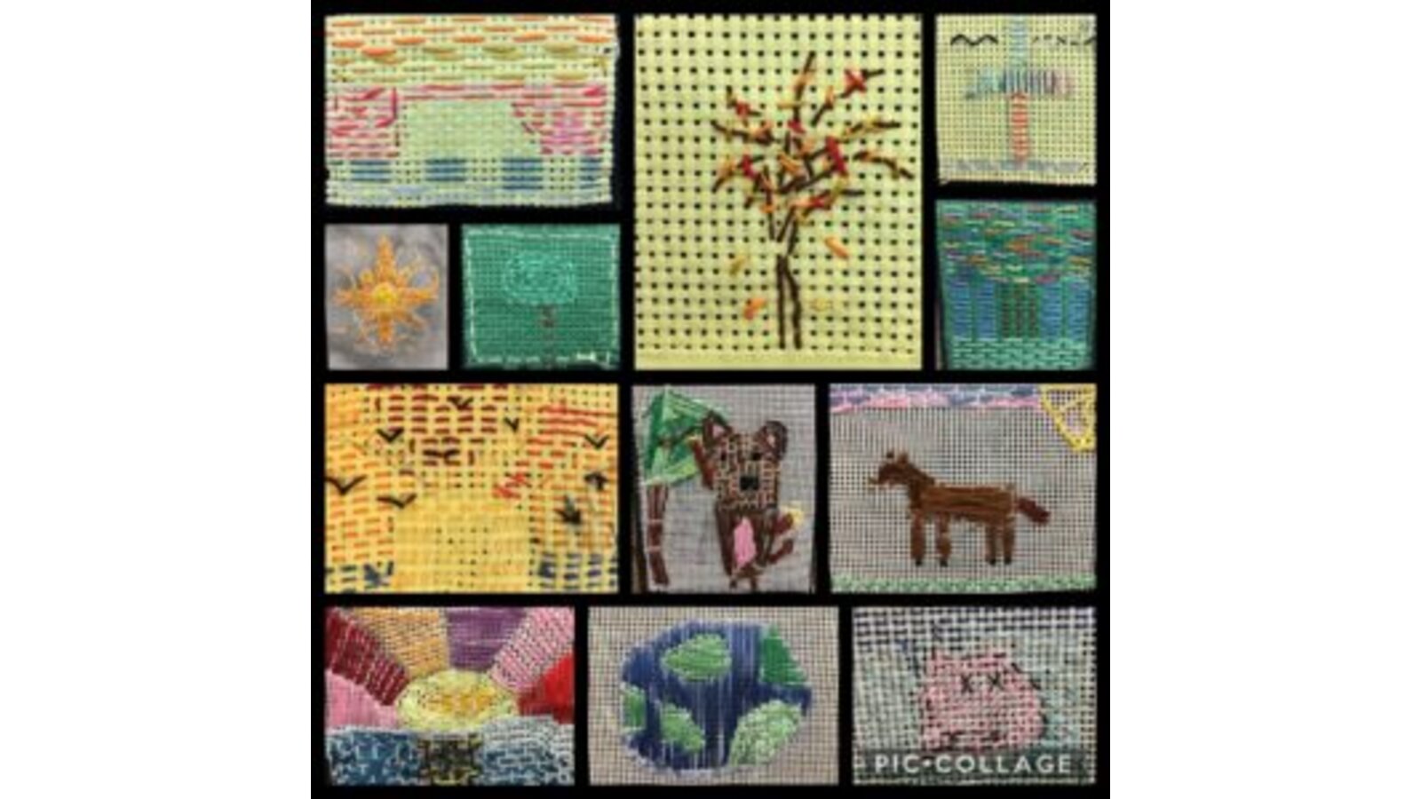 Following on from an RE lesson about the story of creation from the Book of Genesis, year 5&6 designed their own creation picture of something they were thankful to God for and have recreated their designs in the form of an embroidered picture using embroidery thread and binca . They have incorporated their choice of stitches for different effects including cross stitch, running stitch and diagonal stitch.