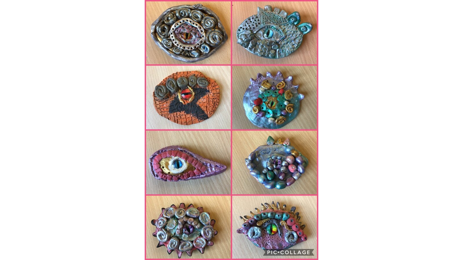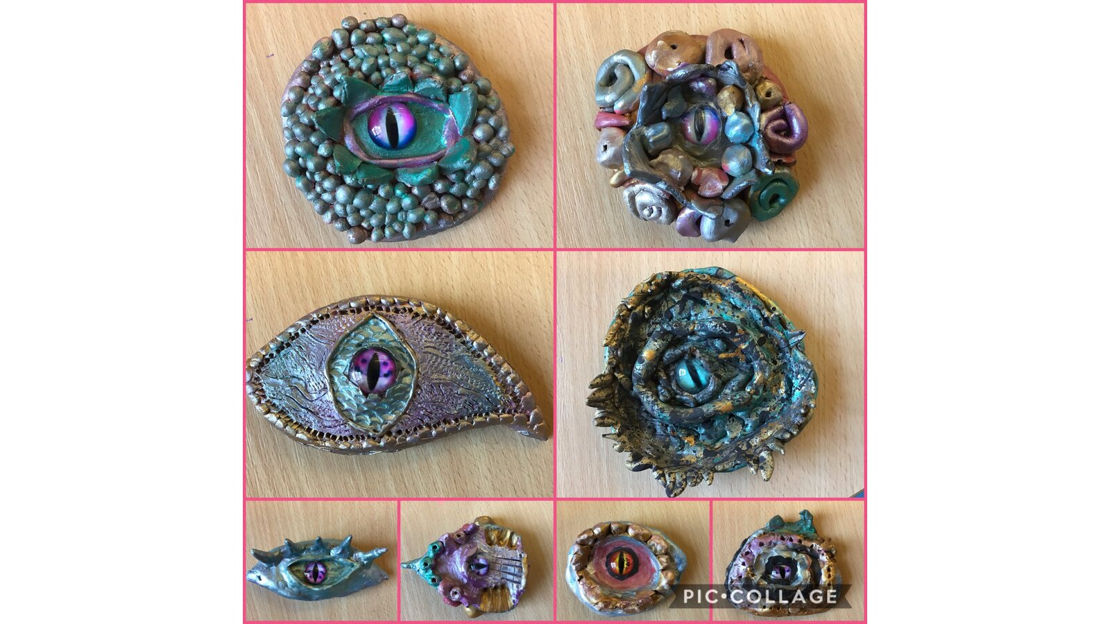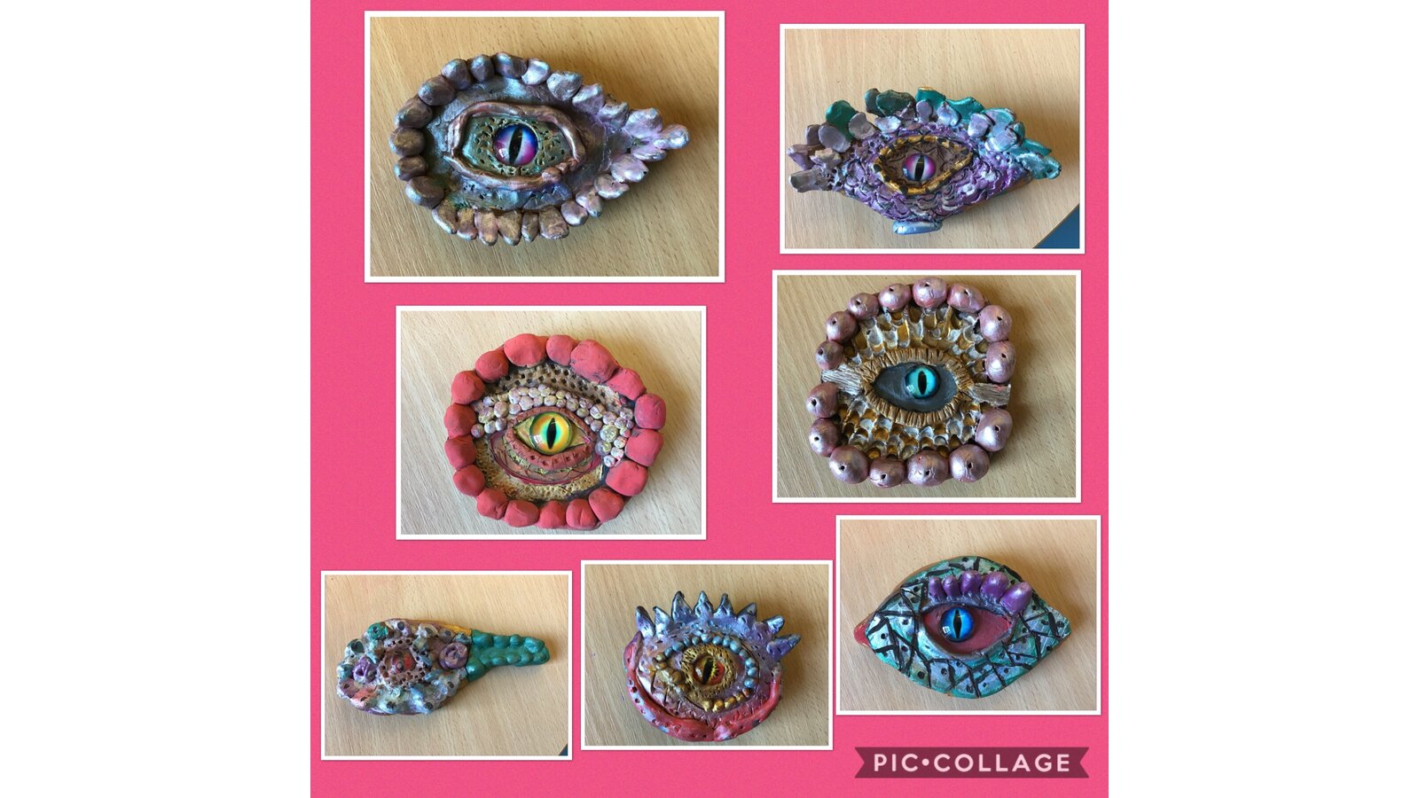 Year 5&6 have been learning about legends from around the UK and have been inspired by lots of stories featuring dragons, including Michael Morpurgo’s Beowulf. They studied the human eye as a starting point, focusing on shading, contrast and colour. From this, they designed their own dragon eyes inspired by some amazing reptile eyes, then sculpted clay models of their designs. The results are amazing!