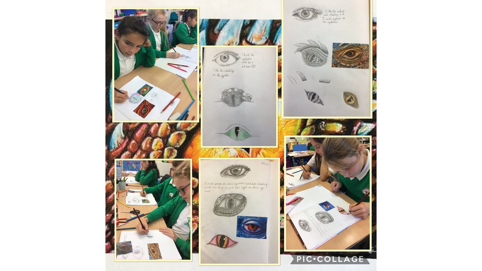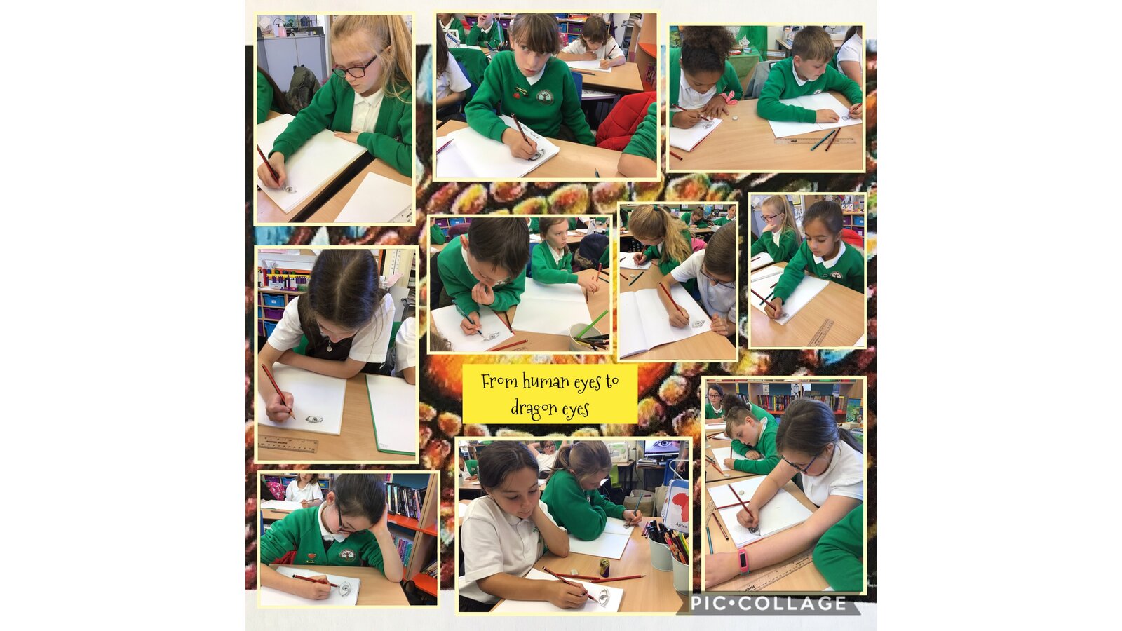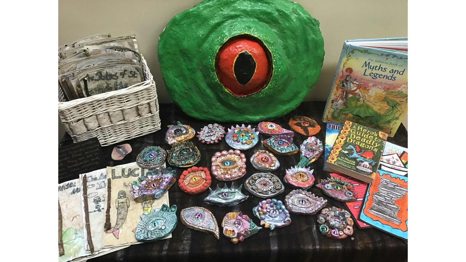Year 5&6 have been learning about legends from around the UK and have been inspired by lots of stories featuring dragons, including Michael Morpurgo’s Beowulf. They studied the human eye as a starting point, focusing on shading, contrast and colour. From this, they designed their own dragon eyes inspired by some amazing reptile eyes, then sculpted clay models of their designs. The results are amazing!