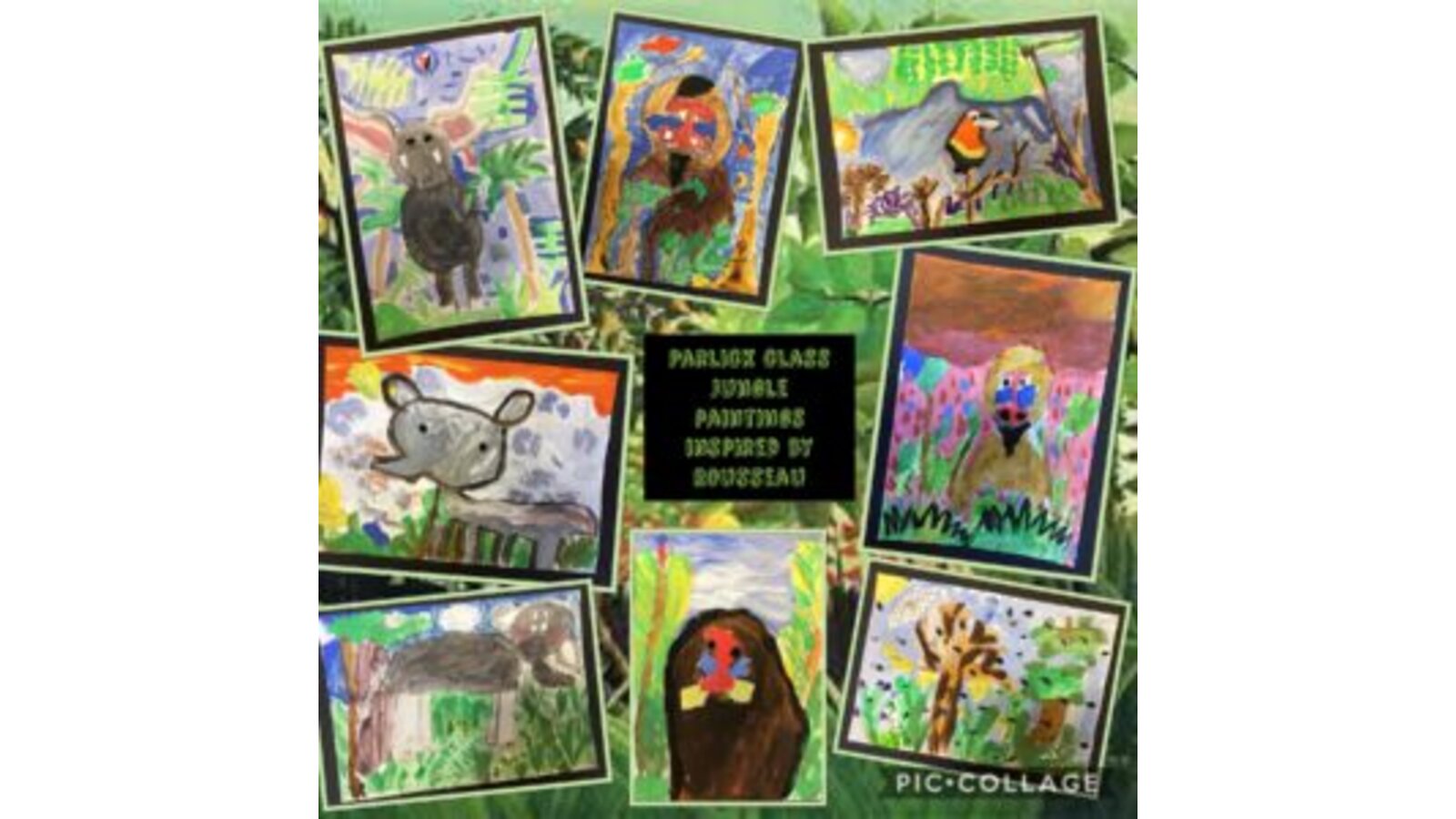 Year 1 & 2 wonderful art work inspired by the artist Henry Rousseau