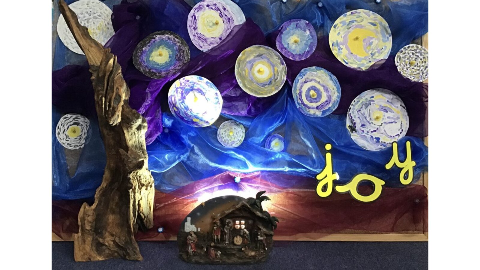 Following our Van Gogh exhibition visit, we have been inspired to try out Van Gogh’s style for ourselves. Beacon Class have created Starry Night swirls using a limited palette of blues, purple and yellow mimicking the Impressionist style of Van Gogh. They then used these to create a piece of collaborative art for a virtual advent service with other local schools. Their brief was ‘joy’ – the joy of the birth of Jesus was the theme they chose and they are very proud of their beautiful creation with a 3d element too!