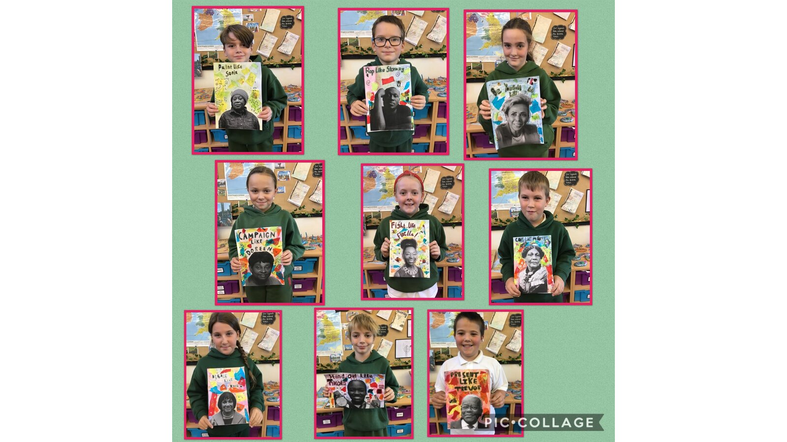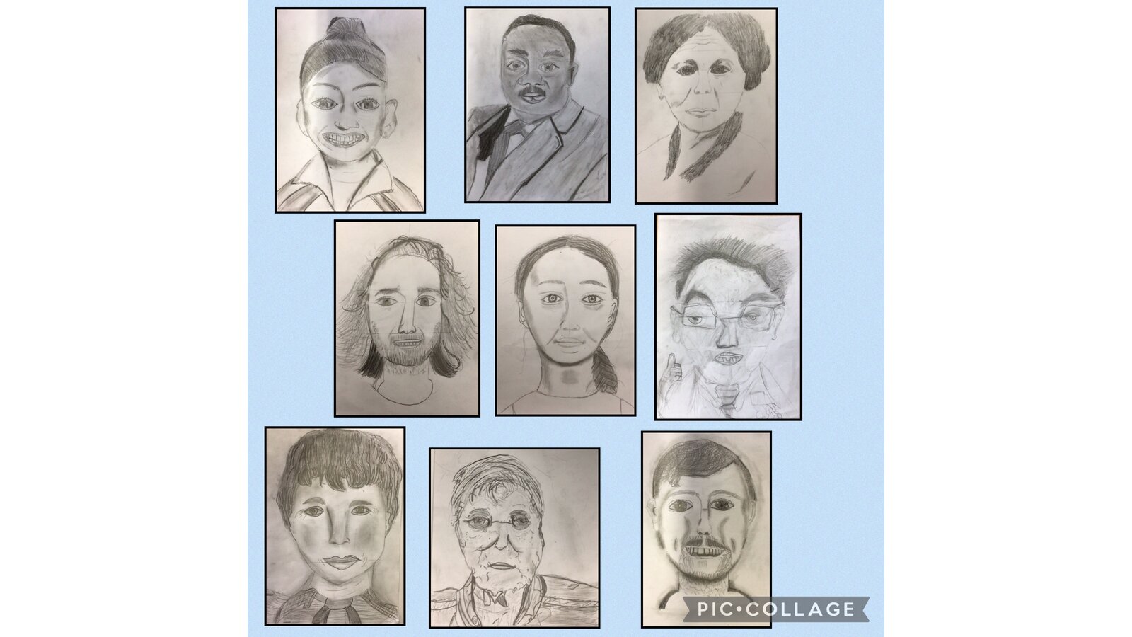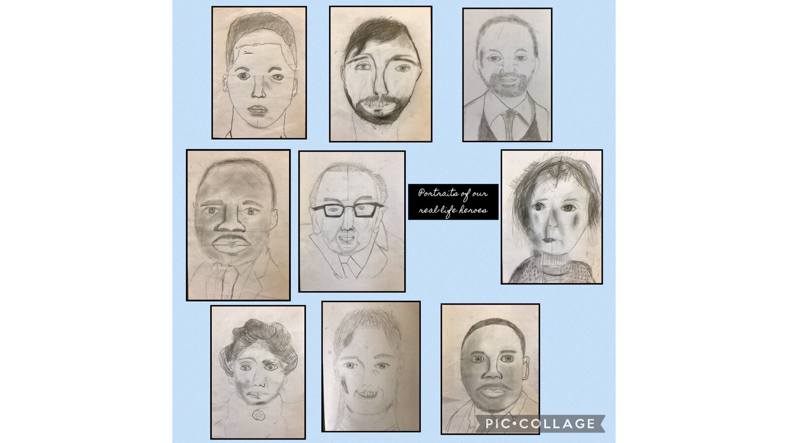 Year 5&6 have been studying facial proportions and have produced some fantastic pencil drawing of their real-life heroes.