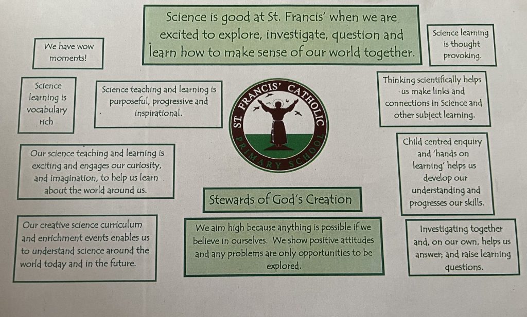 Children and staff have together created a vision for St. Francis’ science teaching and learning…