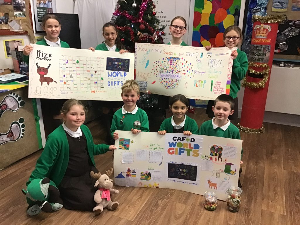 Children in the CAFOD Club decided to create a ‘Name the Rudolf’ stall and ‘Guess the Sweets in the Jar’ stall. Children helped run the stalls and promoted the work of CAFOD to help others across the world! The money was spent on: