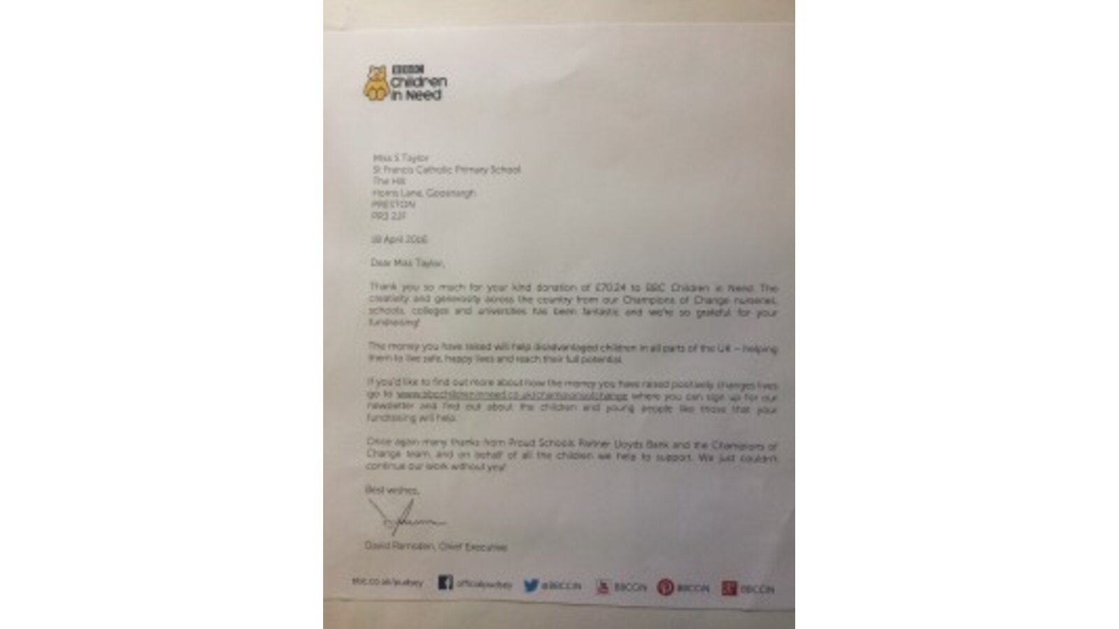 Thank you for sponsoring your children in our sponsored run-we raised £300.