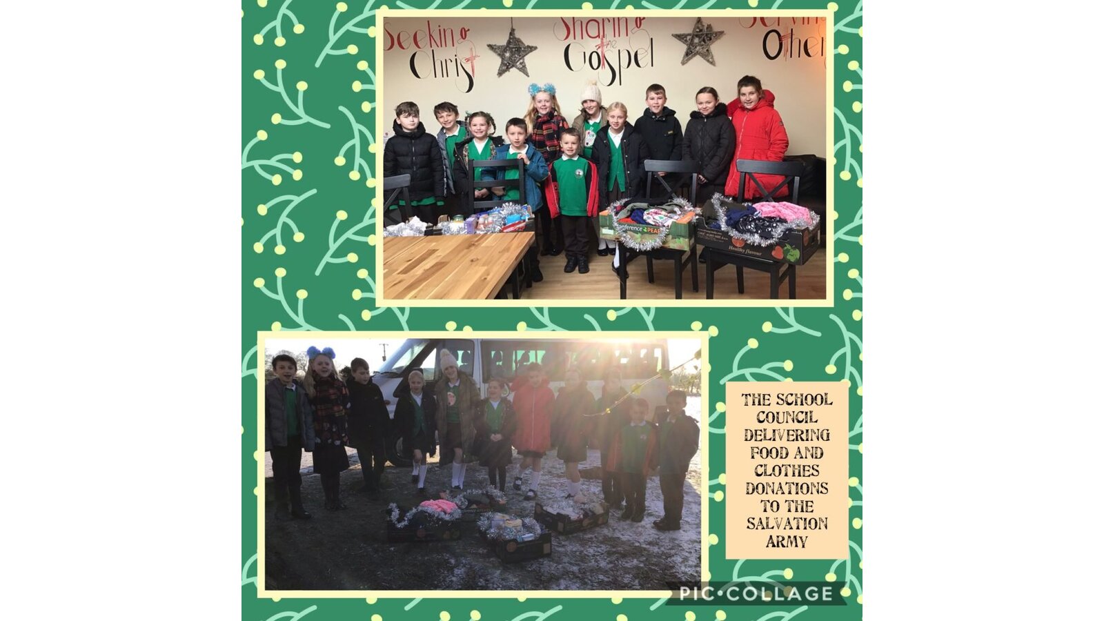 The St. Francis’ School Council have been collecting donations of clothing and food for their choice of charity – The Salvation Army. Mr. Gilmour drove the School Council to the local Salvation Army to talk to the kind volunteers their and present the donations of clothing to support local people.
