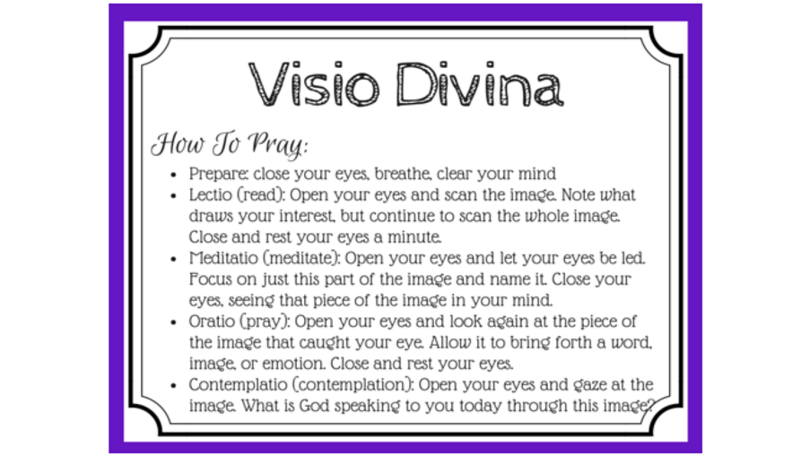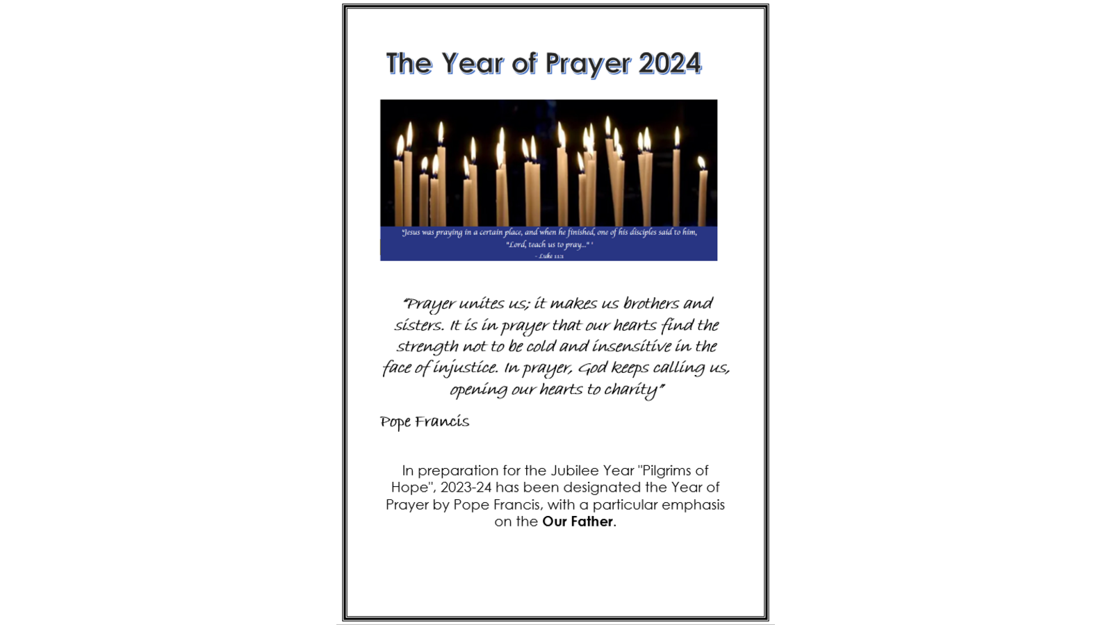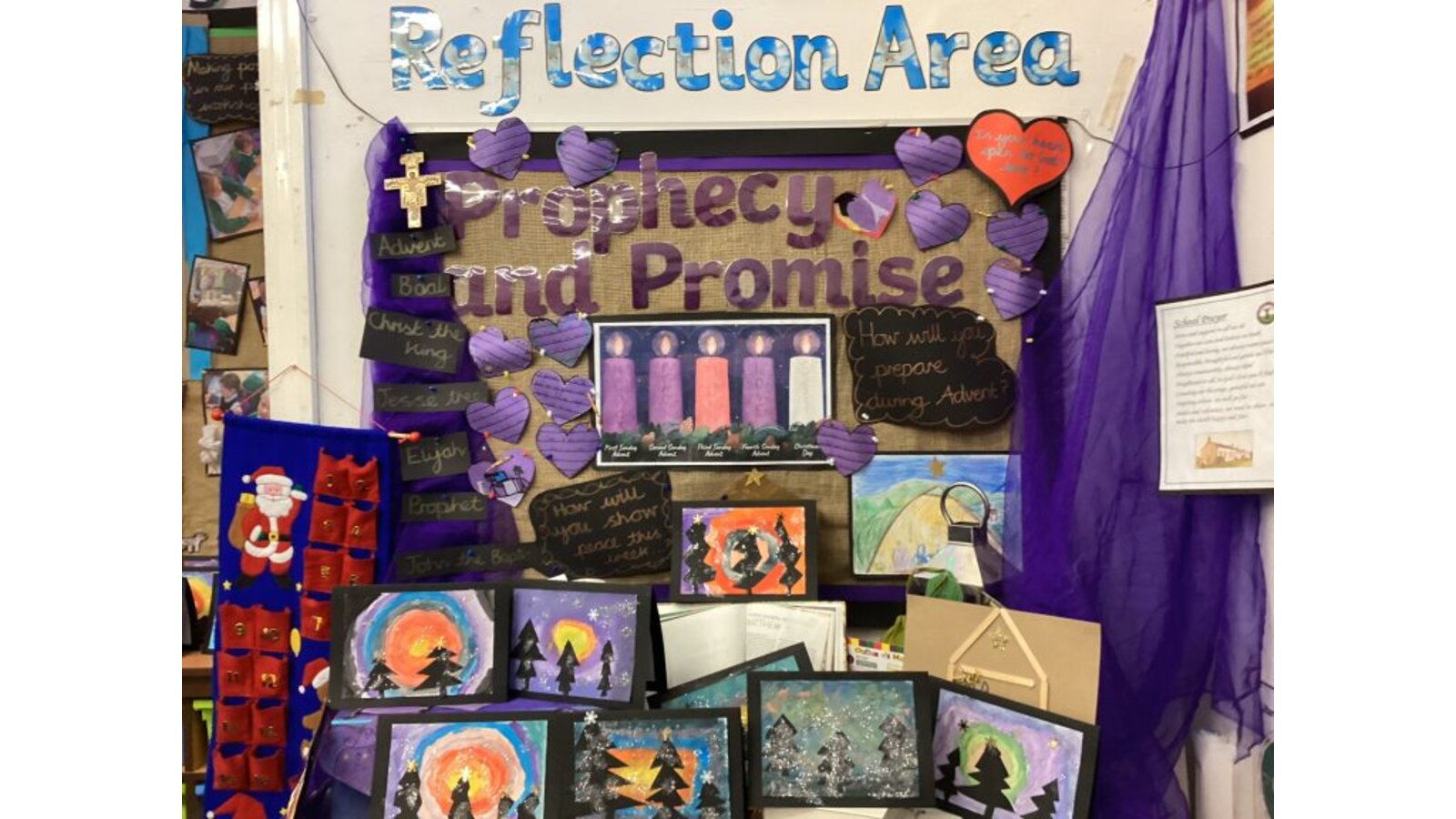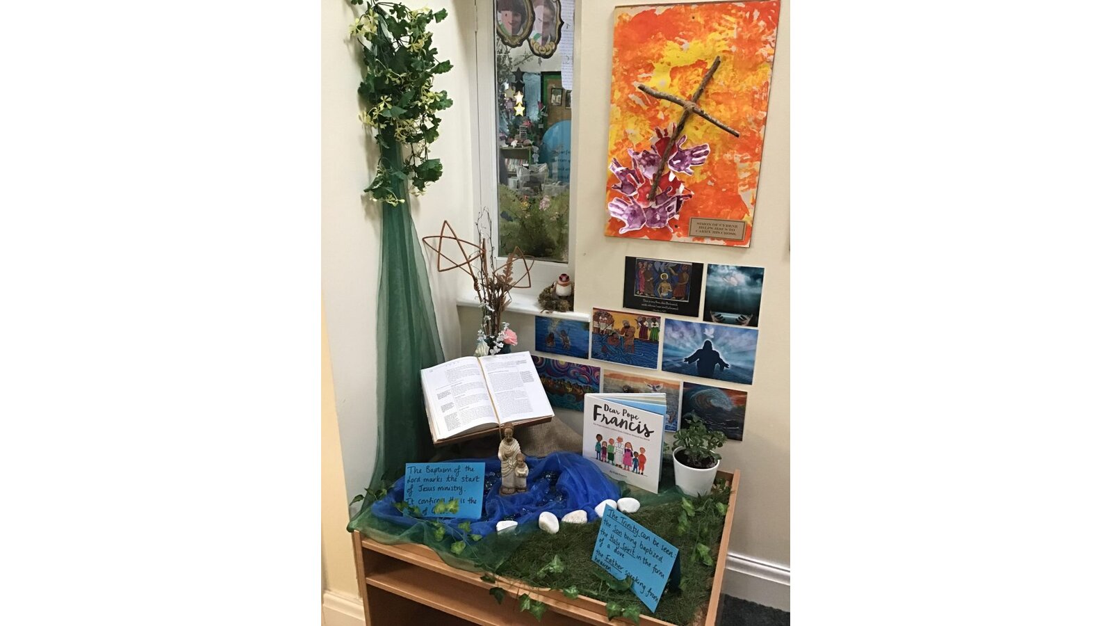 Each child takes part in a daily act of worship that lasts for 10 minutes. Traditional and formal prayers are used at lunchtime and to open and close the school day sessions. The children also plan and lead acts of worship within each of their classes. This happens daily and the children from Year 3 lead Lectio Divina and we are beginning to incorporate Visio Divina to further enhance and deepen our experiences with God.