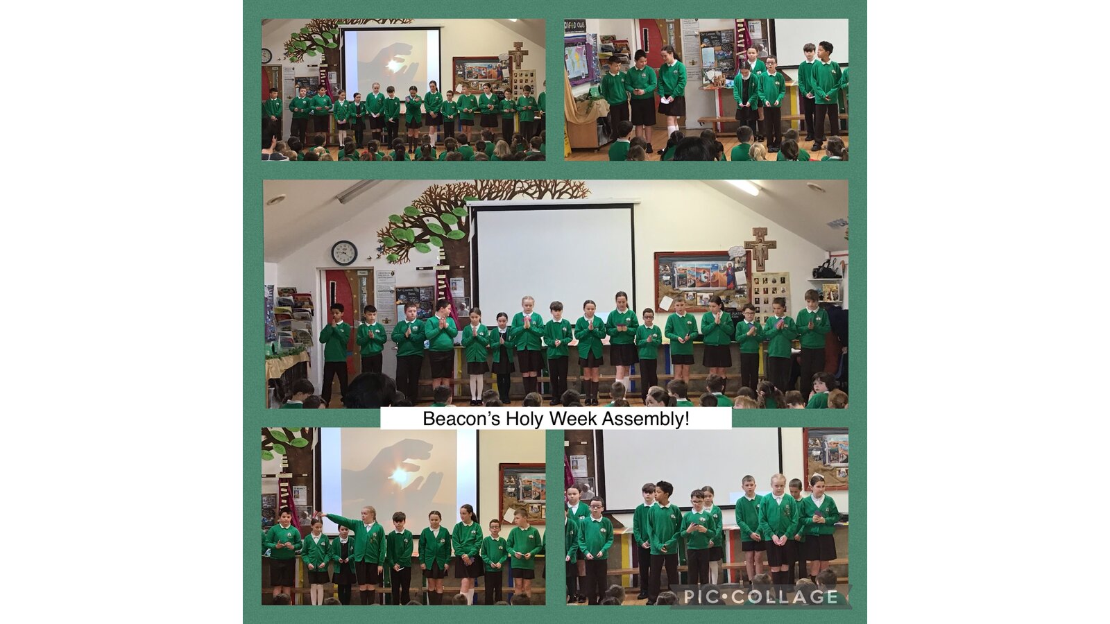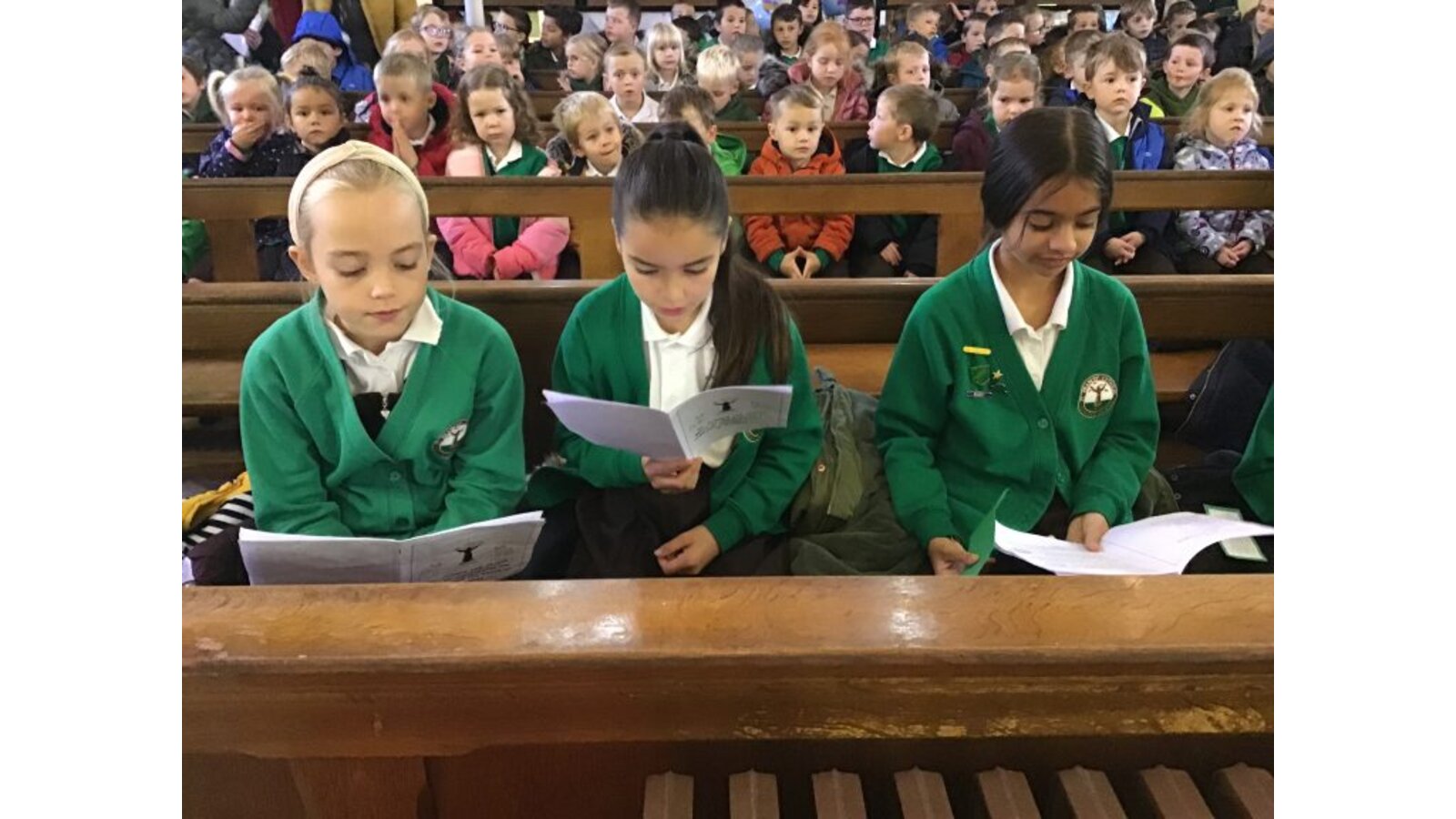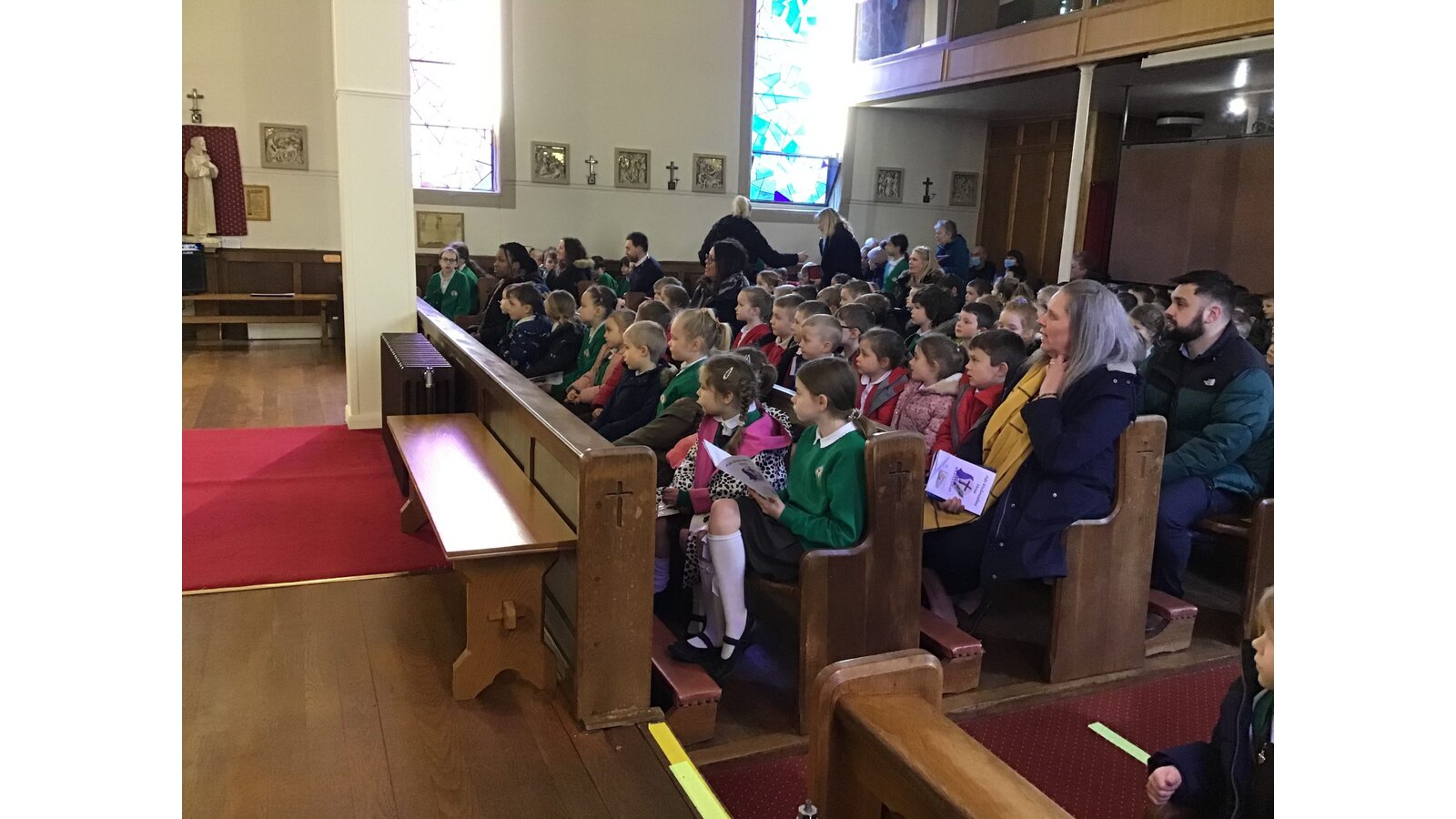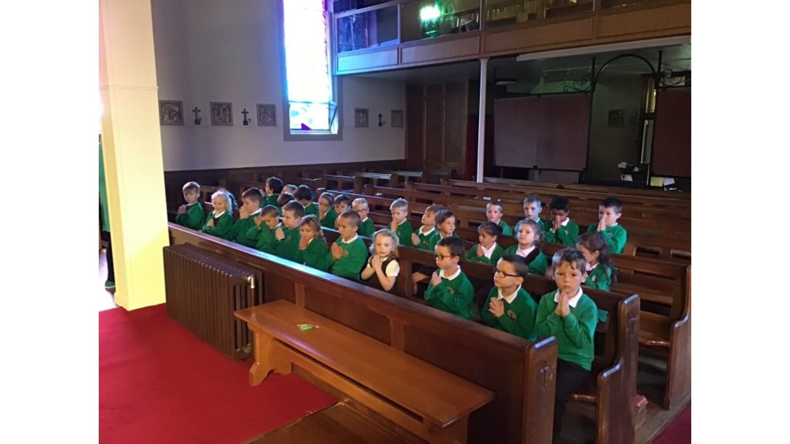 Every Monday morning, Miss Deakin leads the assembly base on the Sunday Gospel and this follows the liturgical year. The children are active participants and displays in the hall support the teachings of the assembly. Every Tuesday, we have class mass and Fr Sony leads us in church. Each Friday morning, Miss Deakin leads Golden award celebration assembly and the children enjoy learning traditional hymns and engaging songs. Sometimes, we have a focus which the children will lead, especially if they have planned a charity event and the children will also present to the whole school as party of care for our common home.