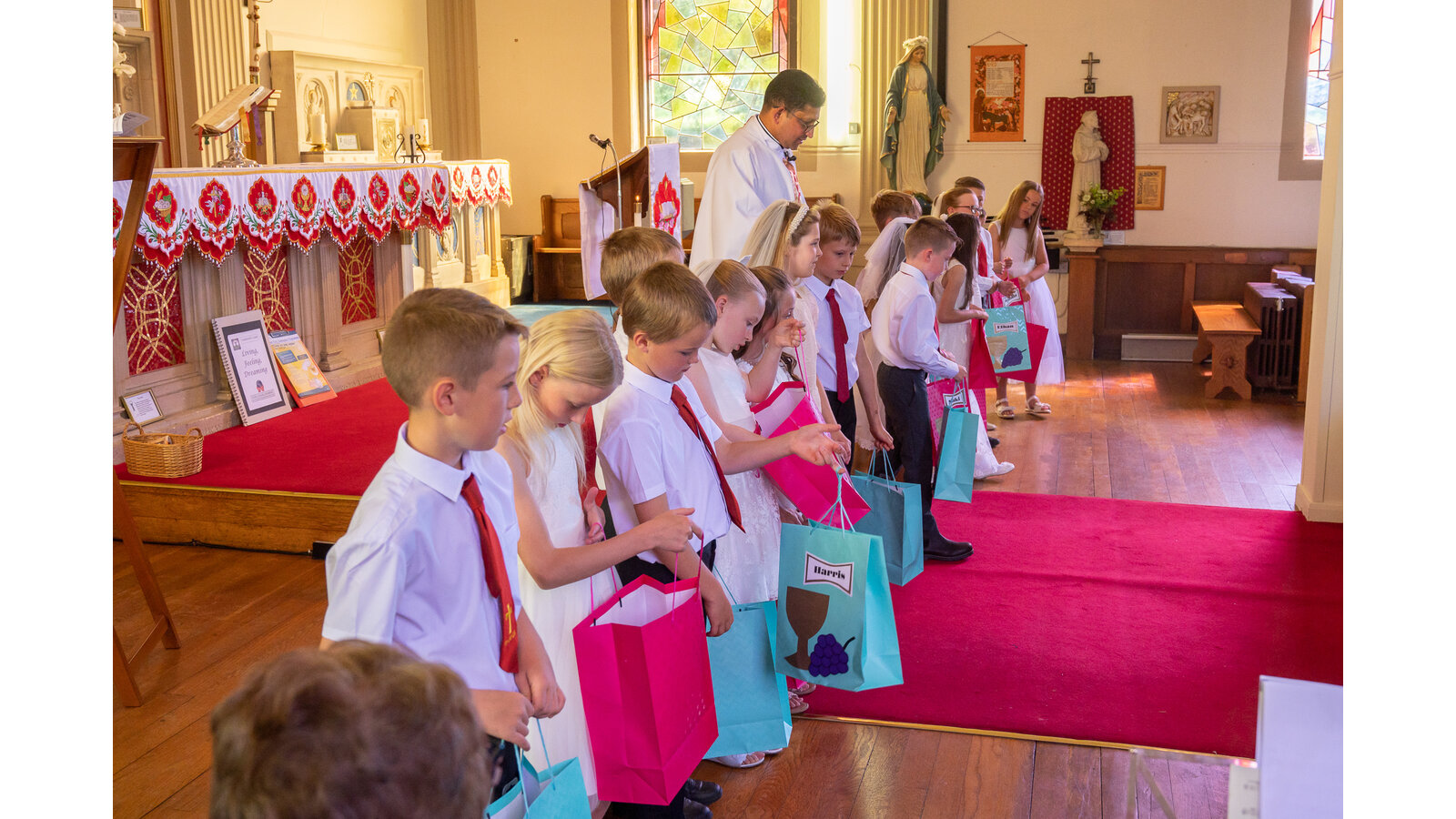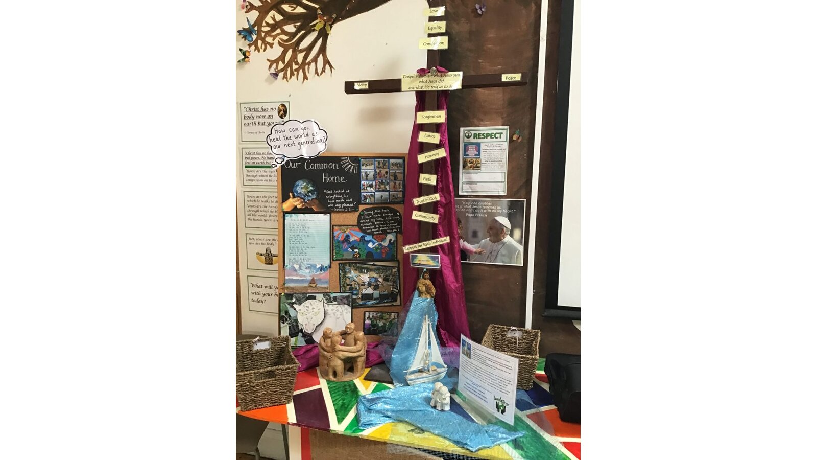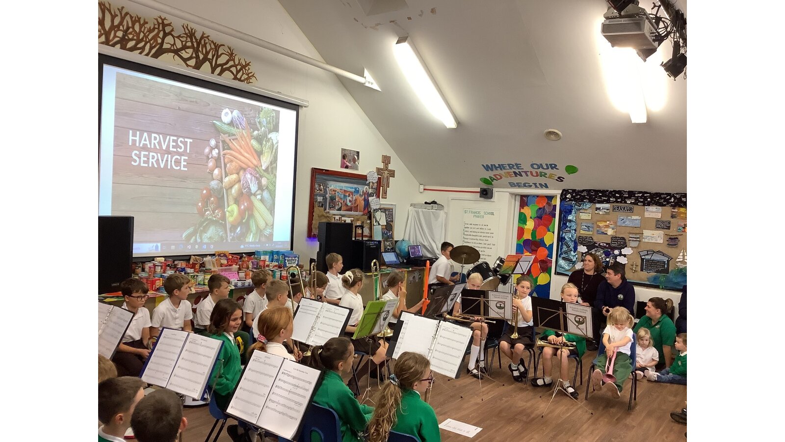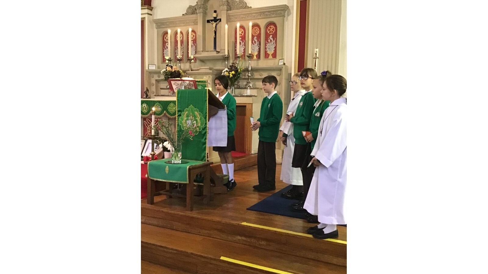 Every Monday morning, Miss Deakin leads the assembly base on the Sunday Gospel and this follows the liturgical year. The children are active participants and displays in the hall support the teachings of the assembly. Every Tuesday, we have class mass and Fr Sony leads us in church. Each Friday morning, Miss Deakin leads Golden award celebration assembly and the children enjoy learning traditional hymns and engaging songs. Sometimes, we have a focus which the children will lead, especially if they have planned a charity event and the children will also present to the whole school as party of care for our common home.