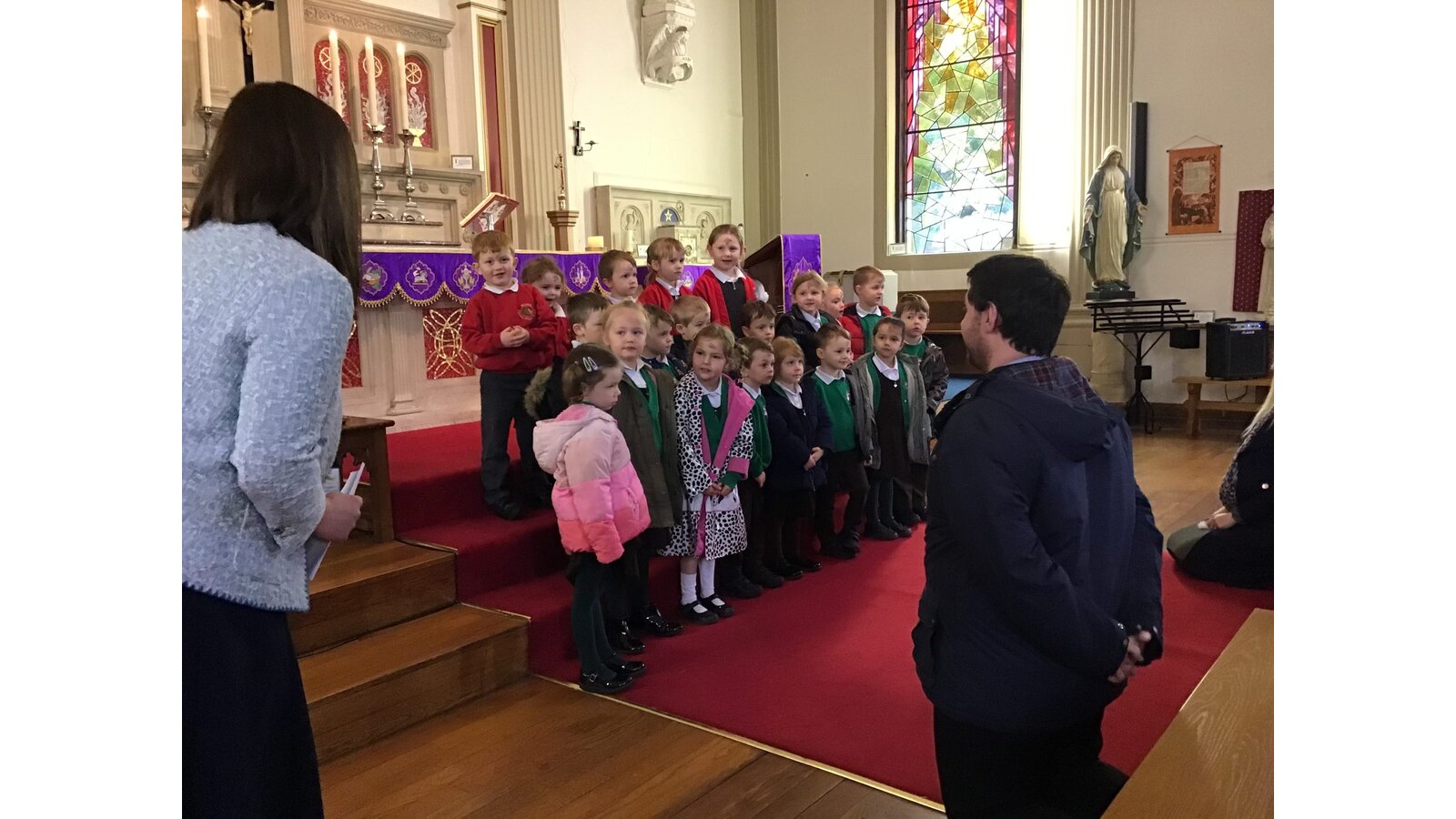 The Chaplain from Our Lady’s High School came to film the children, as part of the nativity film for our Catholic cluster. The children in all of our cluster will take part in the film to be put together to watch at the Cluster Advent Service at St. Anthony’s Church.
