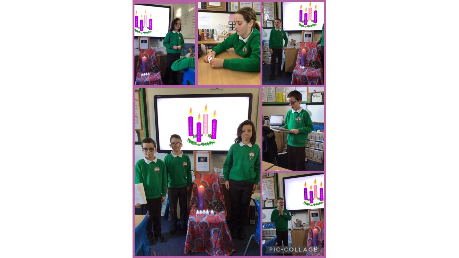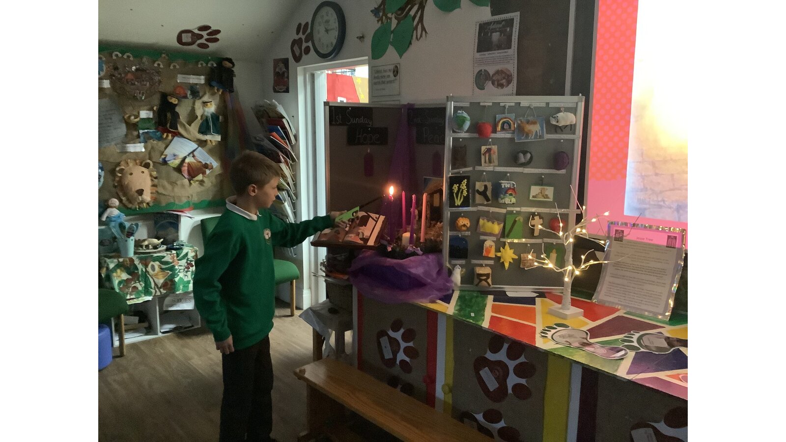 During Advent, in assembly we have been celebrating by lighting each candle for our different weeks at advent. In the photo below you can see the lighting of the first advent candle, the Hope Candle.