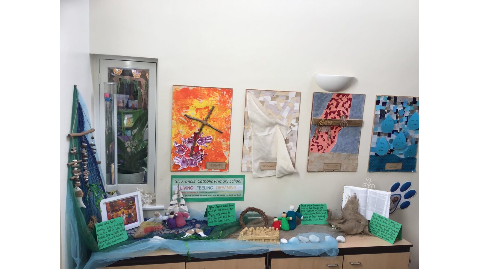 With Christ at our centre, prayer, worship and liturgical celebration are central to our Catholic values and form an integral part of the school day. Prayer is encouraged in a variety of methods; – private individual prayer, group prayer, and whole school prayer. We have a prayer area in school, bible buddies, prayer bags (which are sent home in each class), prayer leaders in assemblies and our enthusiastic and liturgy leaders during our class prayer and liturgy time.