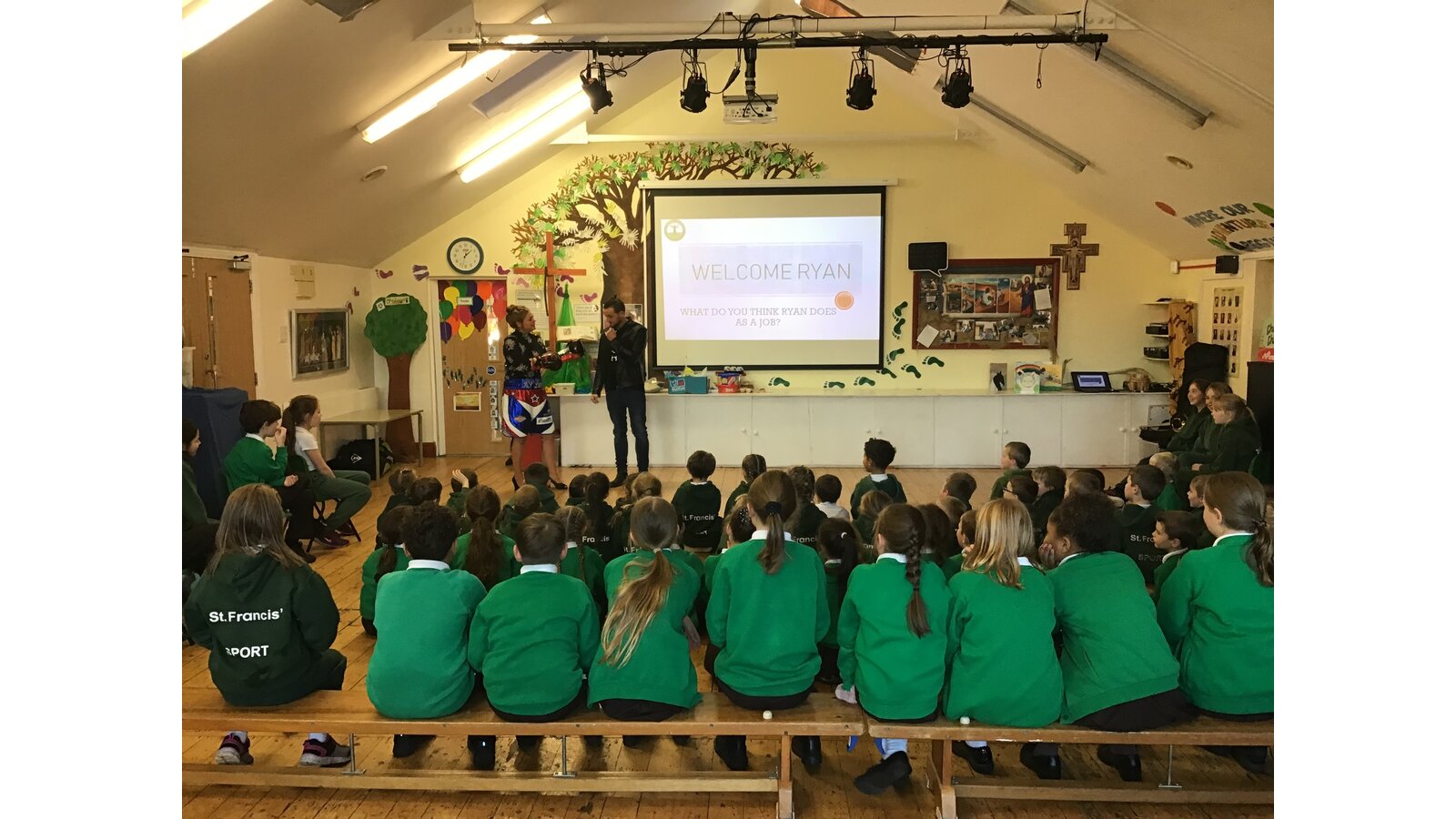 Children at St Francis were treated to a visit from a professional sportsman; Ryan Paul Davies, former professional boxer and now professional wrestler came to visit the children to discuss life as a professional athlete, how to never give up and follow your dreams! An inspiring talk, along with plenty of questions from the children, ended with the children joining in with Ryan’s signature ‘RPD!’ chant! A big thank you to Ryan for coming along to inspire the children and answering some great questions!
